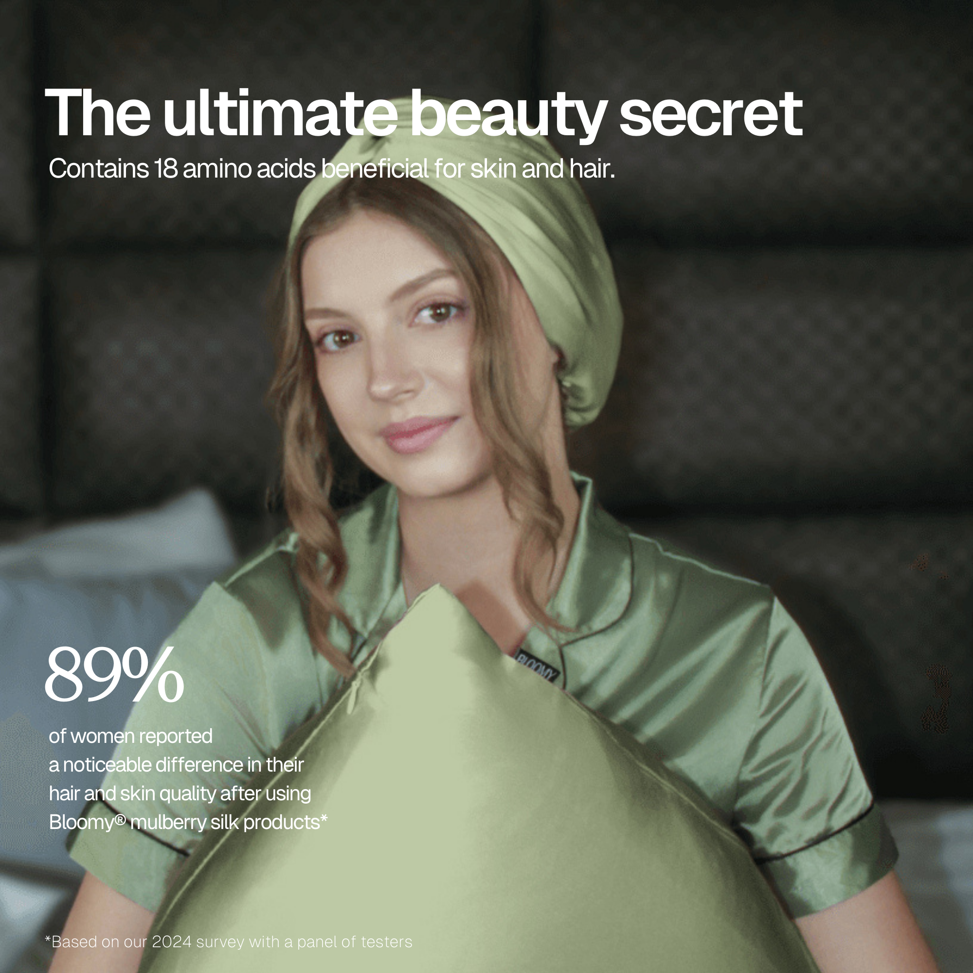 Switching to a Bloomy® olive silk pillowcase means resting on a non-absorbent fabric that locks in hydration, reduces breakage, and leaves your hair effortlessly shiny.