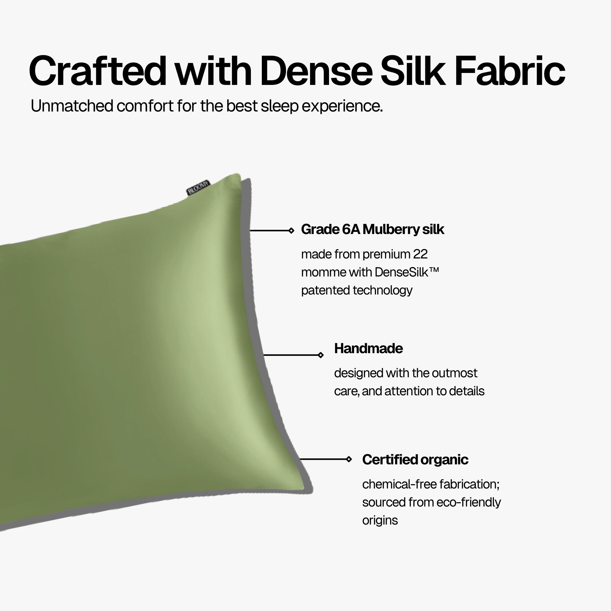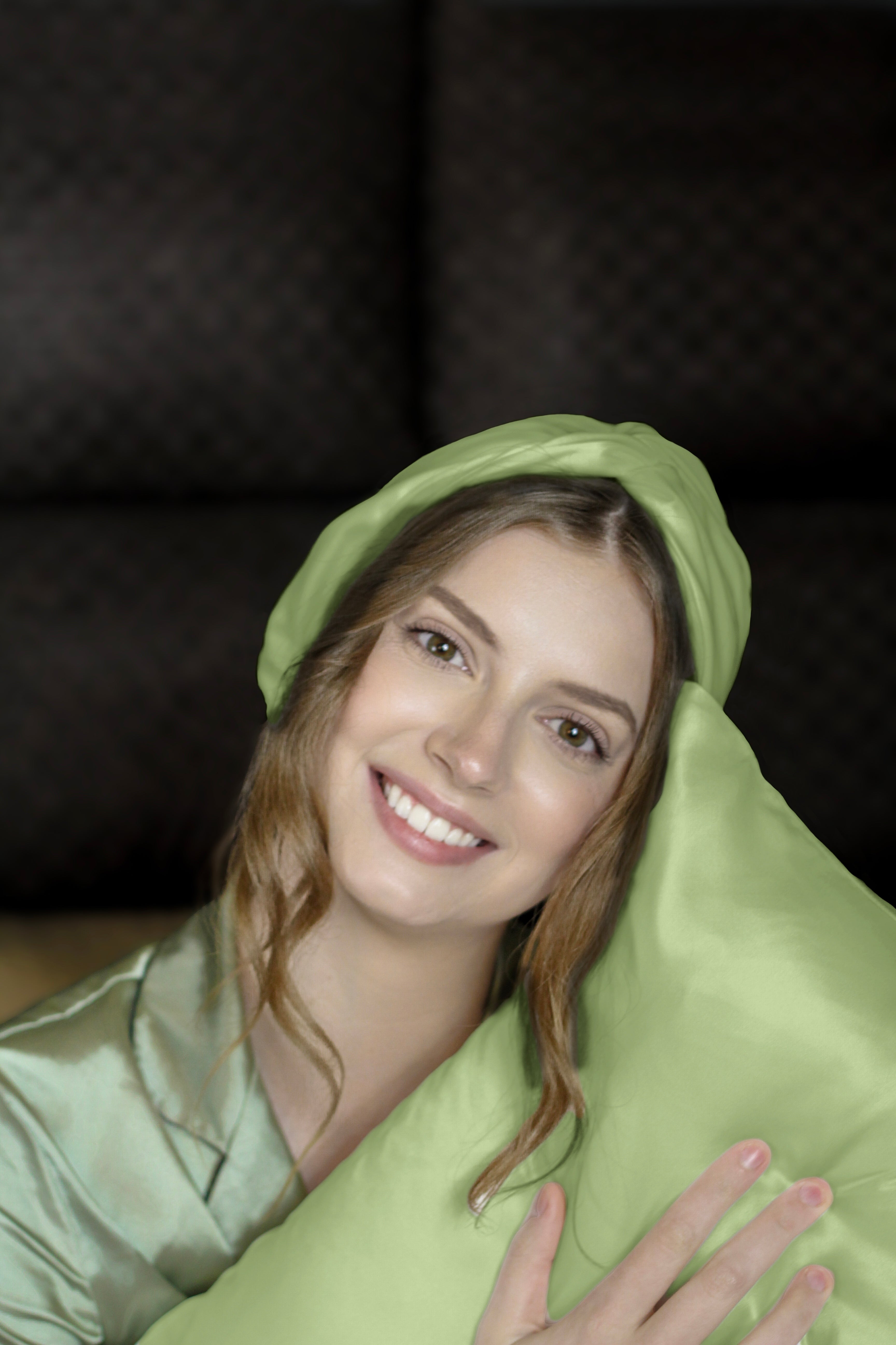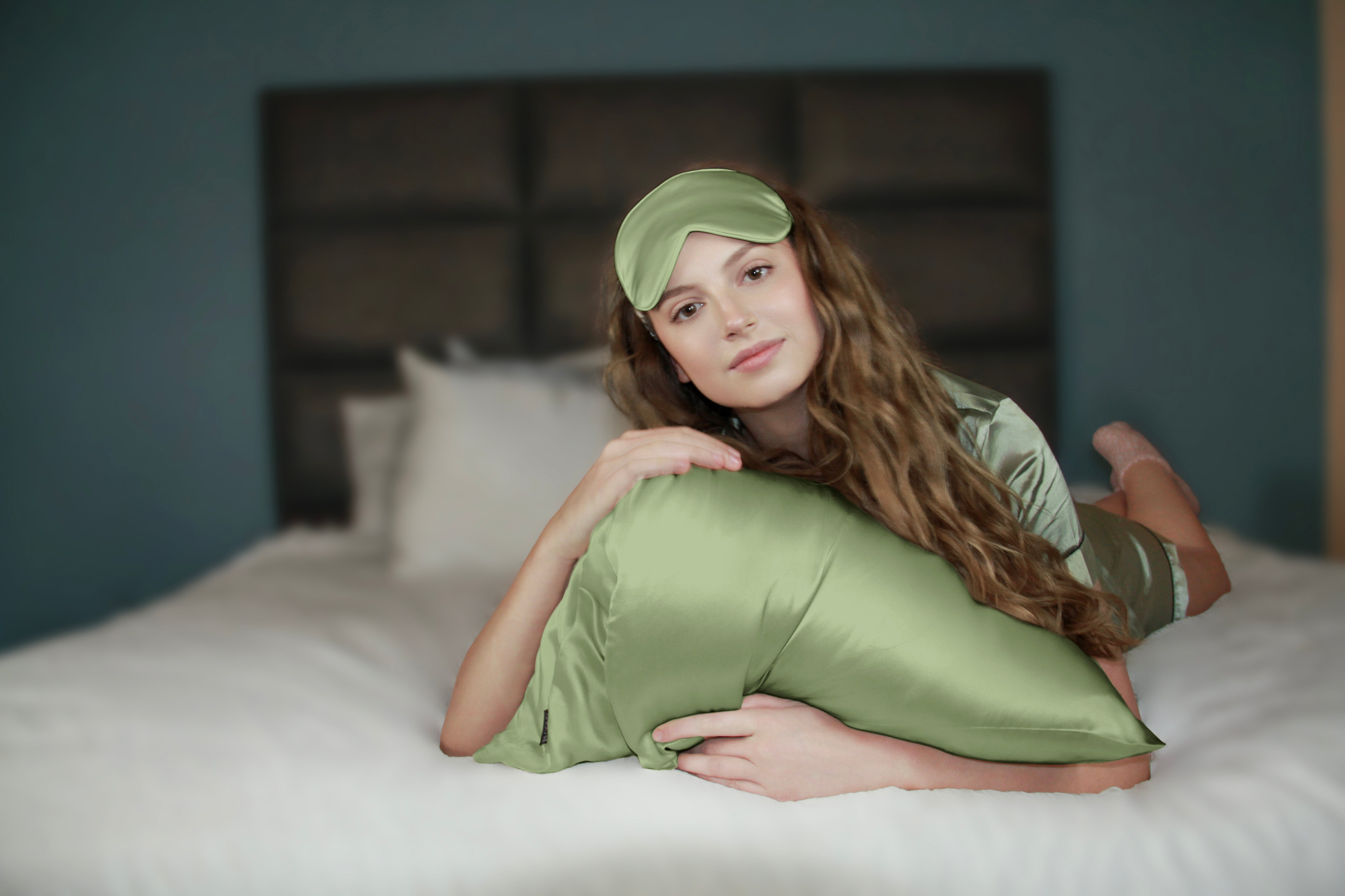 Sleep on a cloud-like, skin- and hair-friendly 100% Mulberry olive silk pillowcase that enhances your beauty and boosts your hair's natural shine.